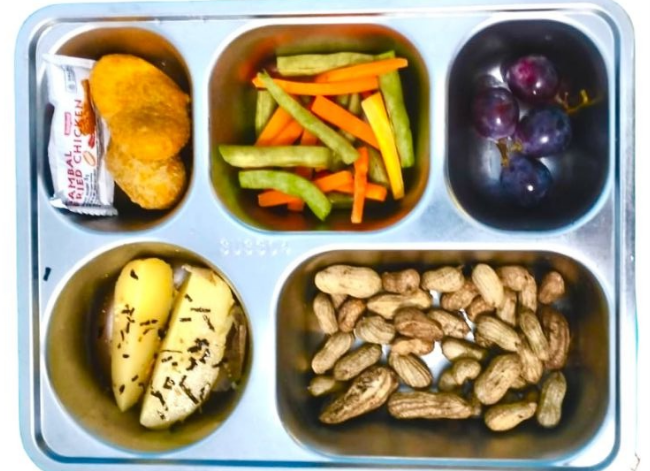Berdasarkan foto yang diterima Madurapers, menu dari Dapur Aisyah terdiri dari tiga butir anggur merah, beberapa kacang rebus, potongan wortel dan kacang panjang, dua nugget, serta dua irisan kentang rebus. Komposisi ini jelas belum memenuhi standar kebutuhan gizi minimal anak usia sekolah.