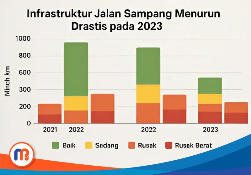 Situasi berubah drastis pada 2023, ketika jalan dalam kondisi baik justru turun menjadi 567,44 km atau 41,1%. Jalan dengan kondisi sedang muncul untuk pertama kalinya dan langsung mencakup 378,29 km atau 27,4%.